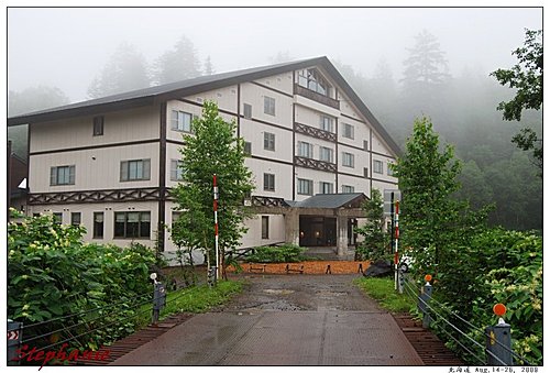 無奈一早起來天候不佳,認份地出門欲搭乘每日僅有三班前往旭岳的巴士。原本時間充裕,出門前想起需有勞櫃台協助致電美瑛TRADINGPOST確認住房,雙方雞同鴨講煞費不少時間,急死需要趕巴士的我們,確認完成後等不及櫃台在想英文如何表達,立即奪門而出地逛奔,所幸 cherry 以英文纏住聽不懂英文的司機,讓我可即時上車,不然下一班車就中午啦,就更悶了!!
